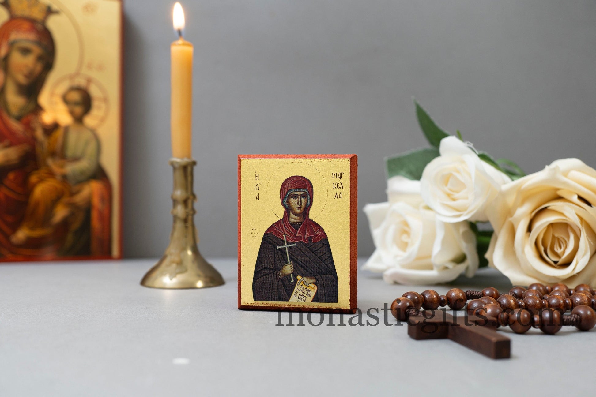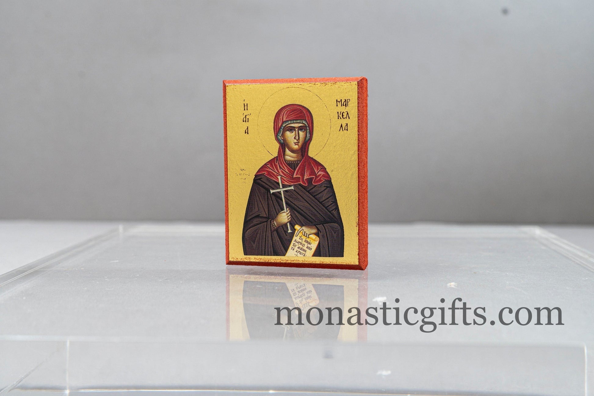 Small Wooden Icon with Saint Marcella Martyr of Chios, Icon in Golden Leaf ,amazing idea for orthodox gift