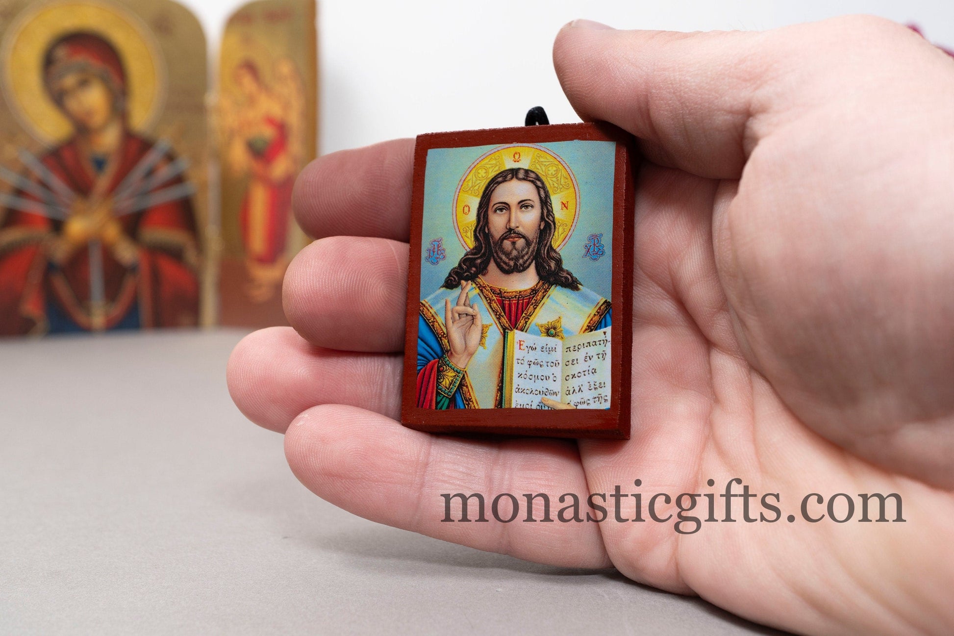 Small Wooden Orthodox icon with Jesus Christ , Neoclassical icon , art wall hanging o amazing idea for orthodox gift.