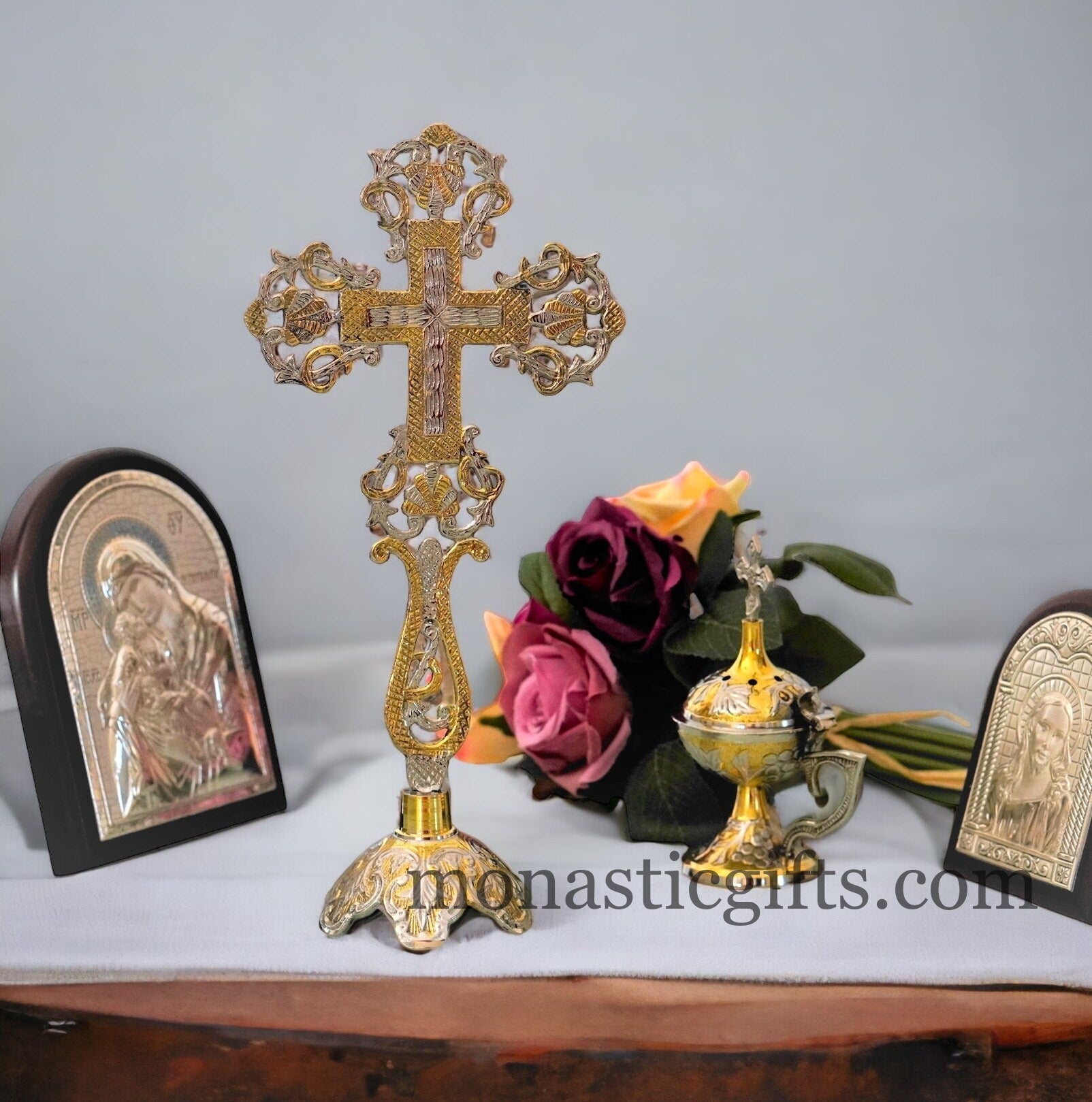 The Gold nickel Plated Altar cross is handmade with strict attention to detail.