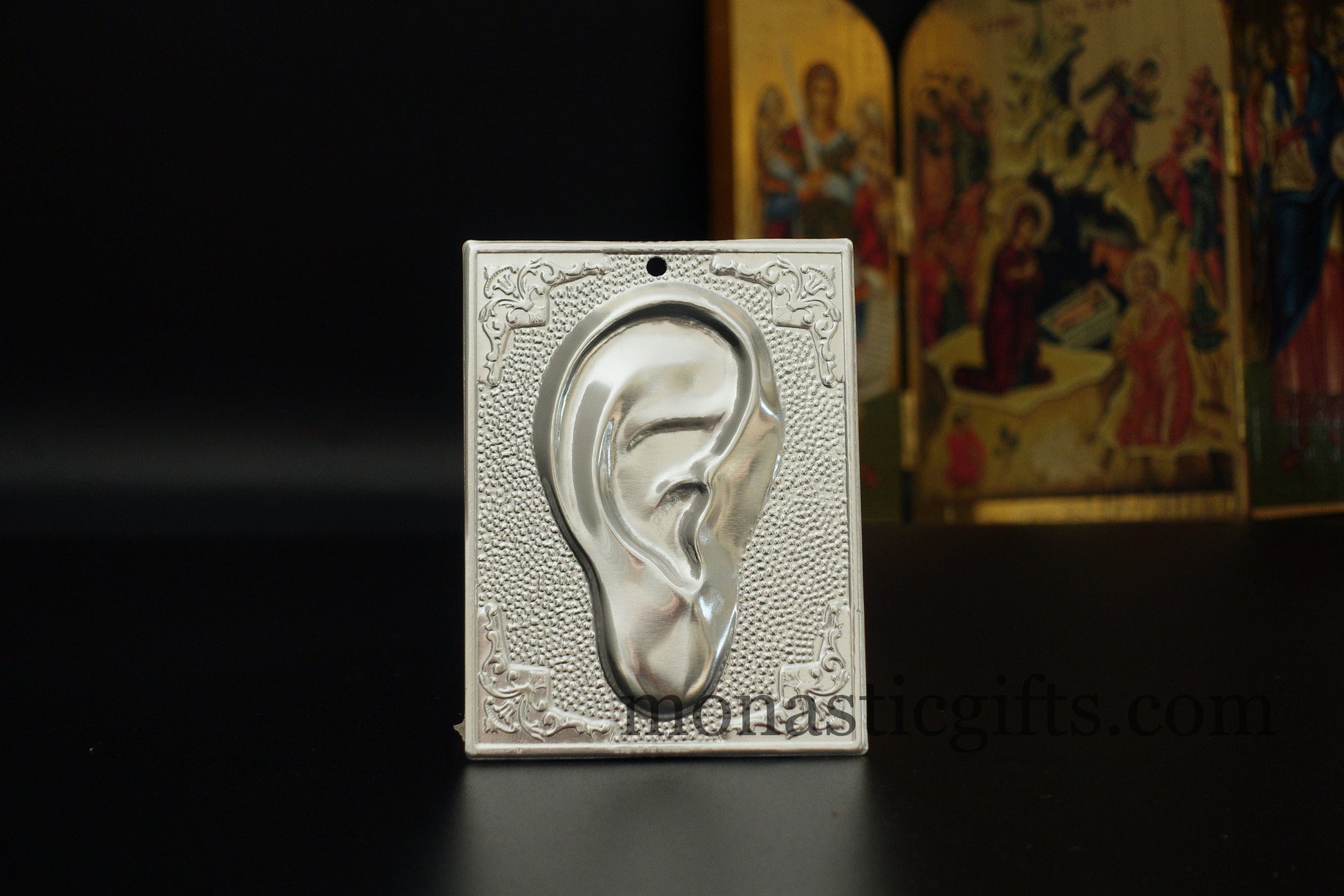 Tama Ex Voto " Ear " Greek Orthodox Icon Embossed Metal Plaque