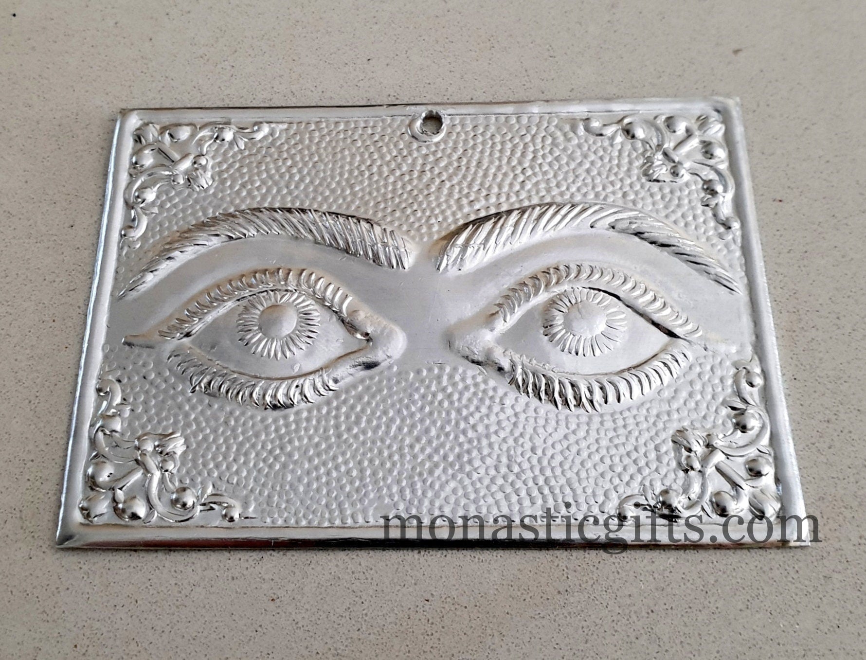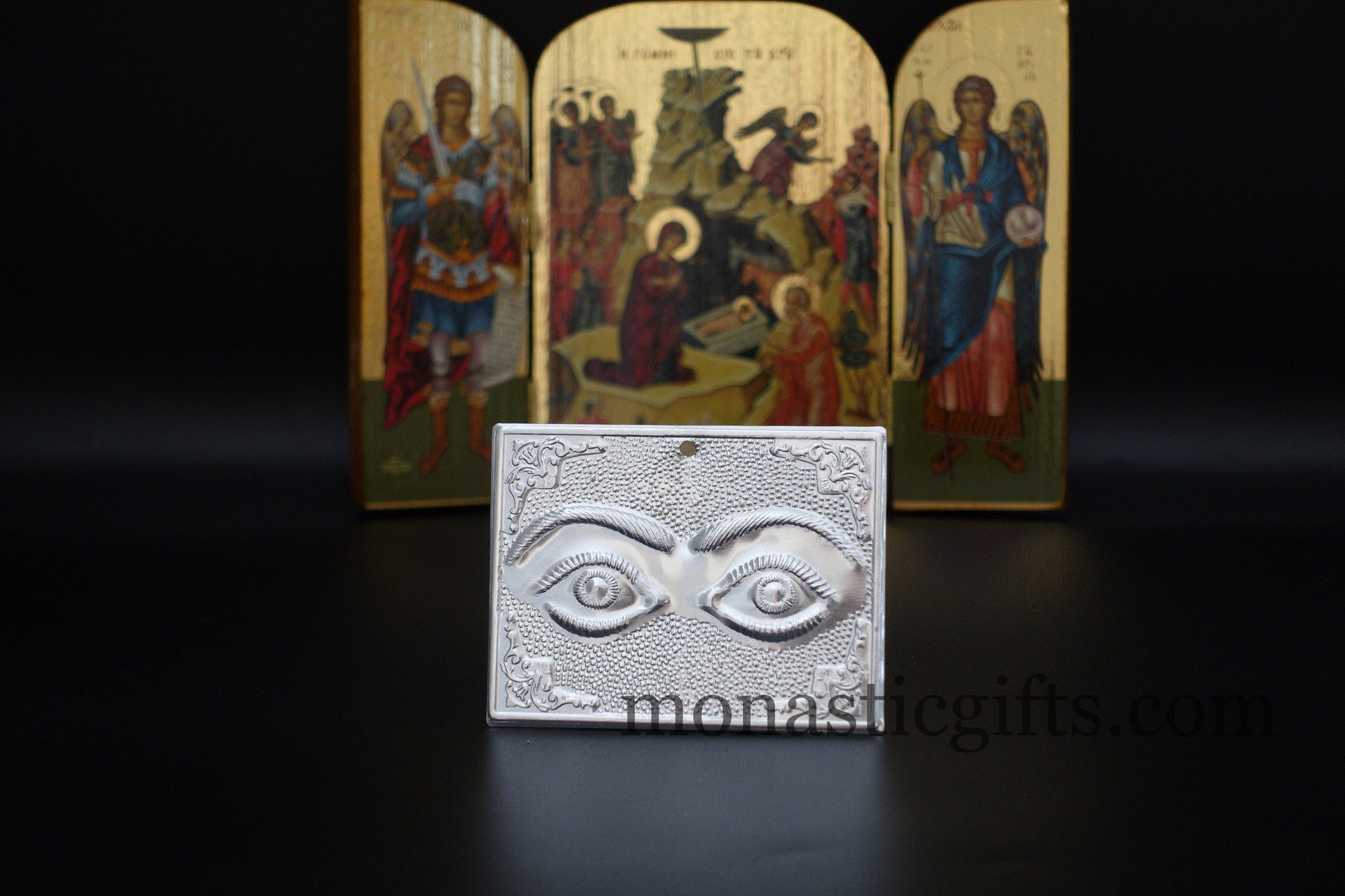 Tama Ex Voto " Eyes " Greek Orthodox Icon Embossed Metal Plaque