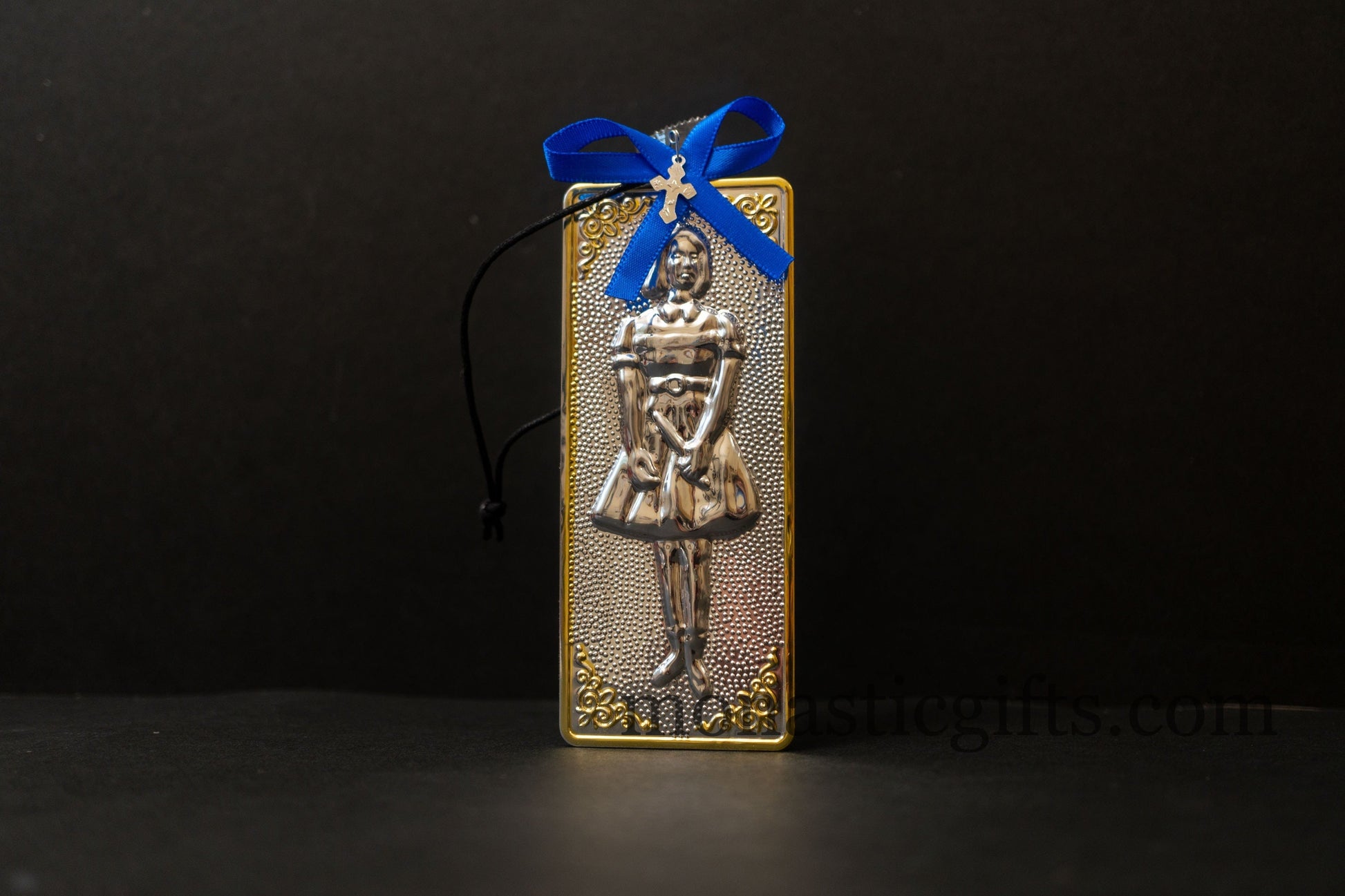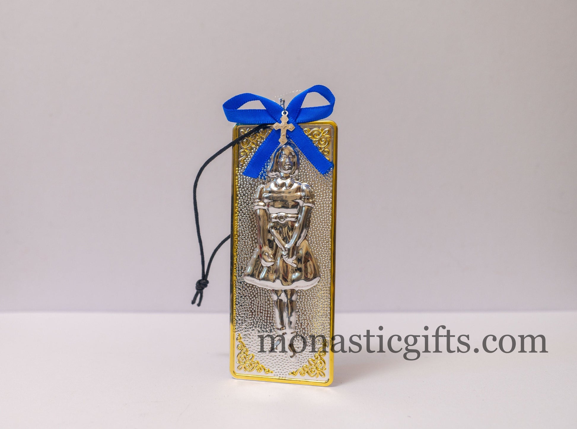 tama votive offering "Girl" votive with painted Golden corners Ribbon and Cross, Byzantine Greek Eastern Orthodox Promise Icon, Ex Voto