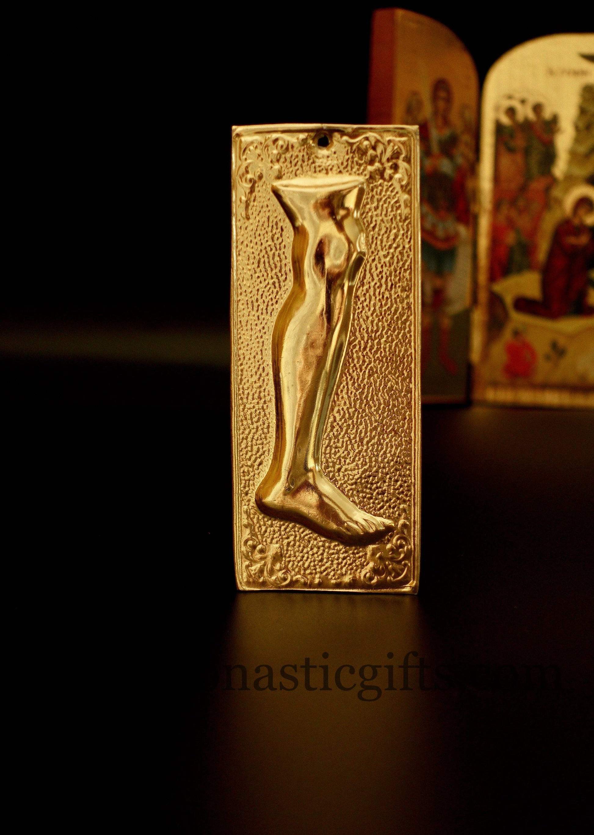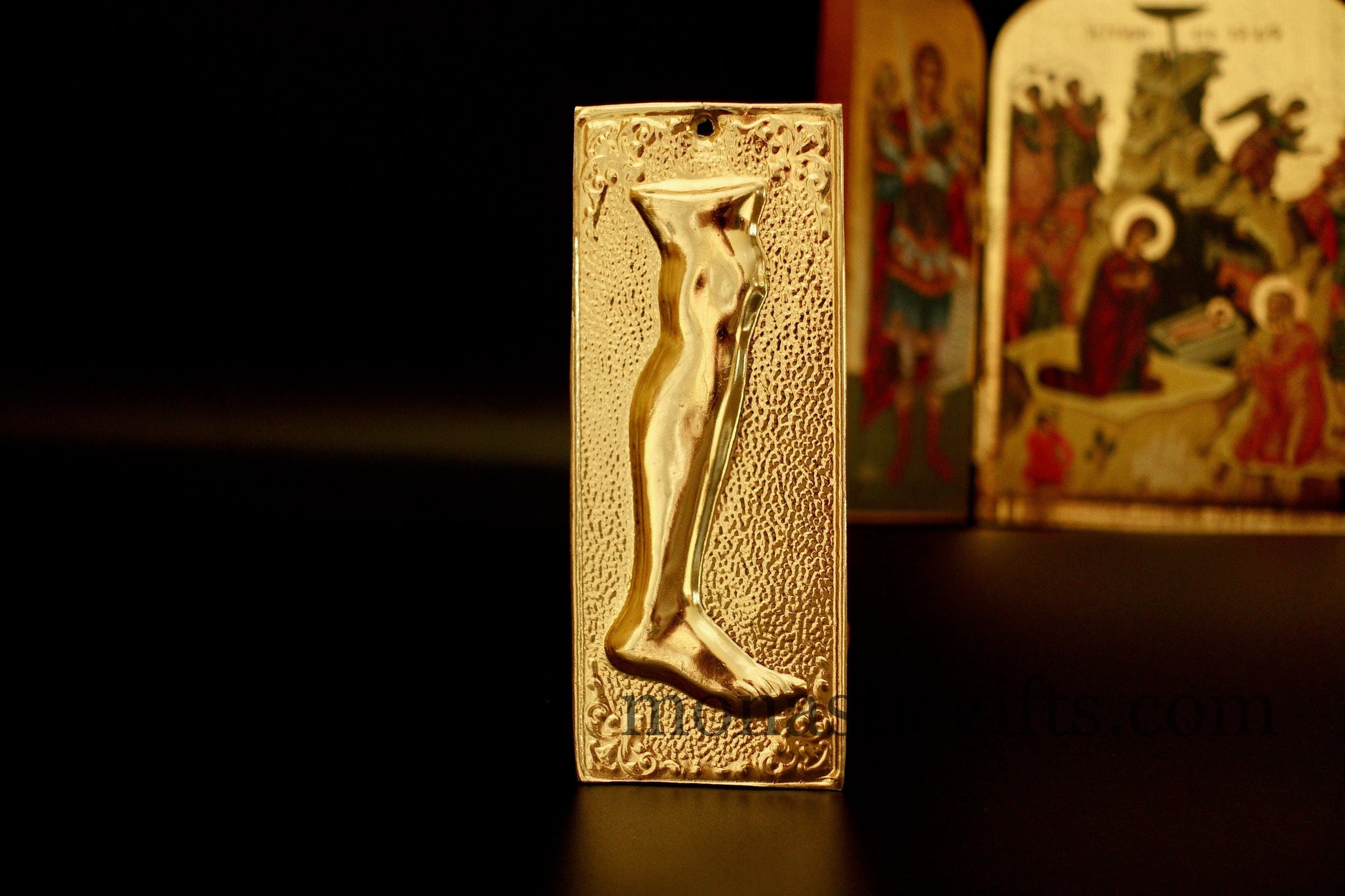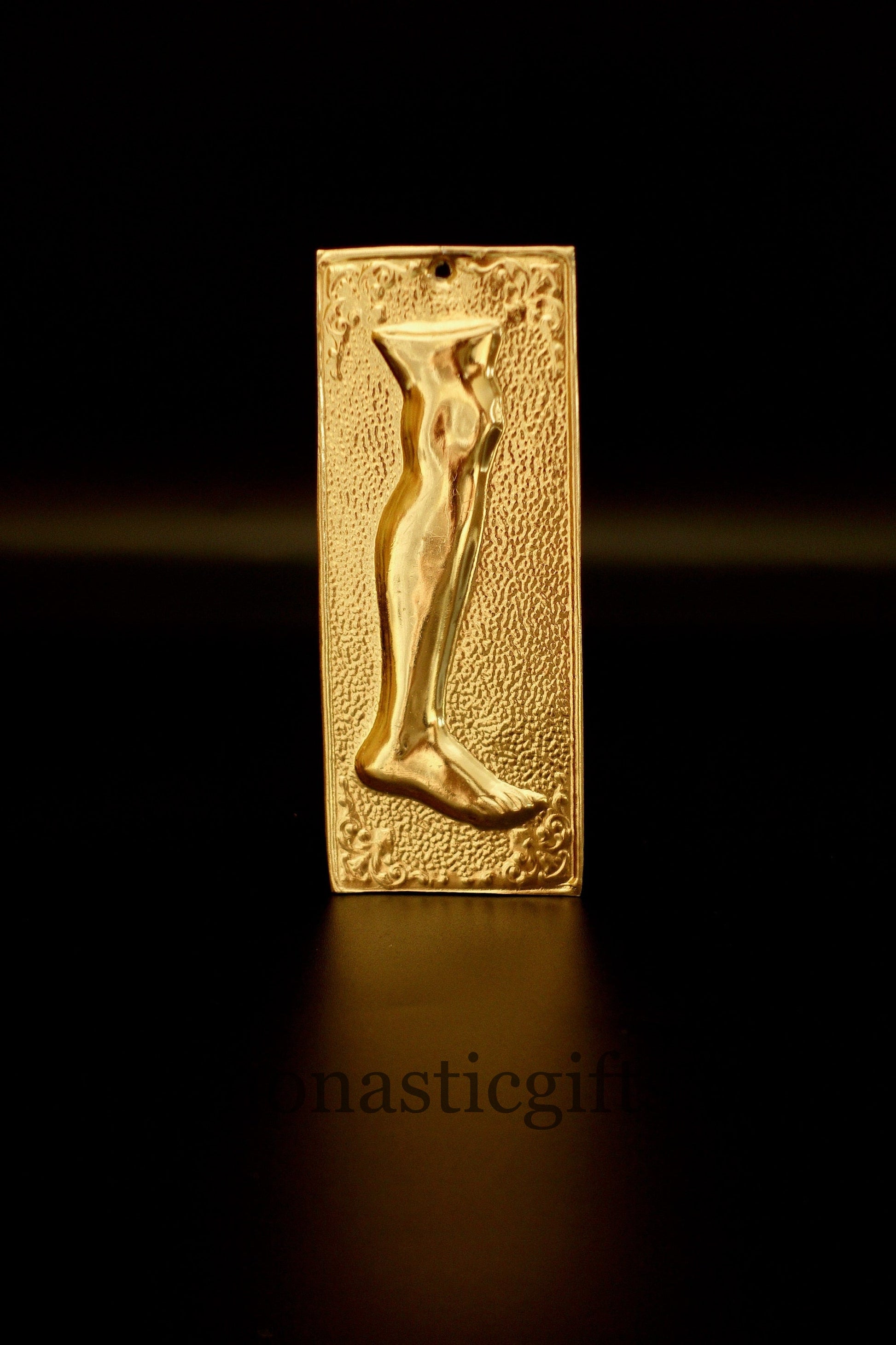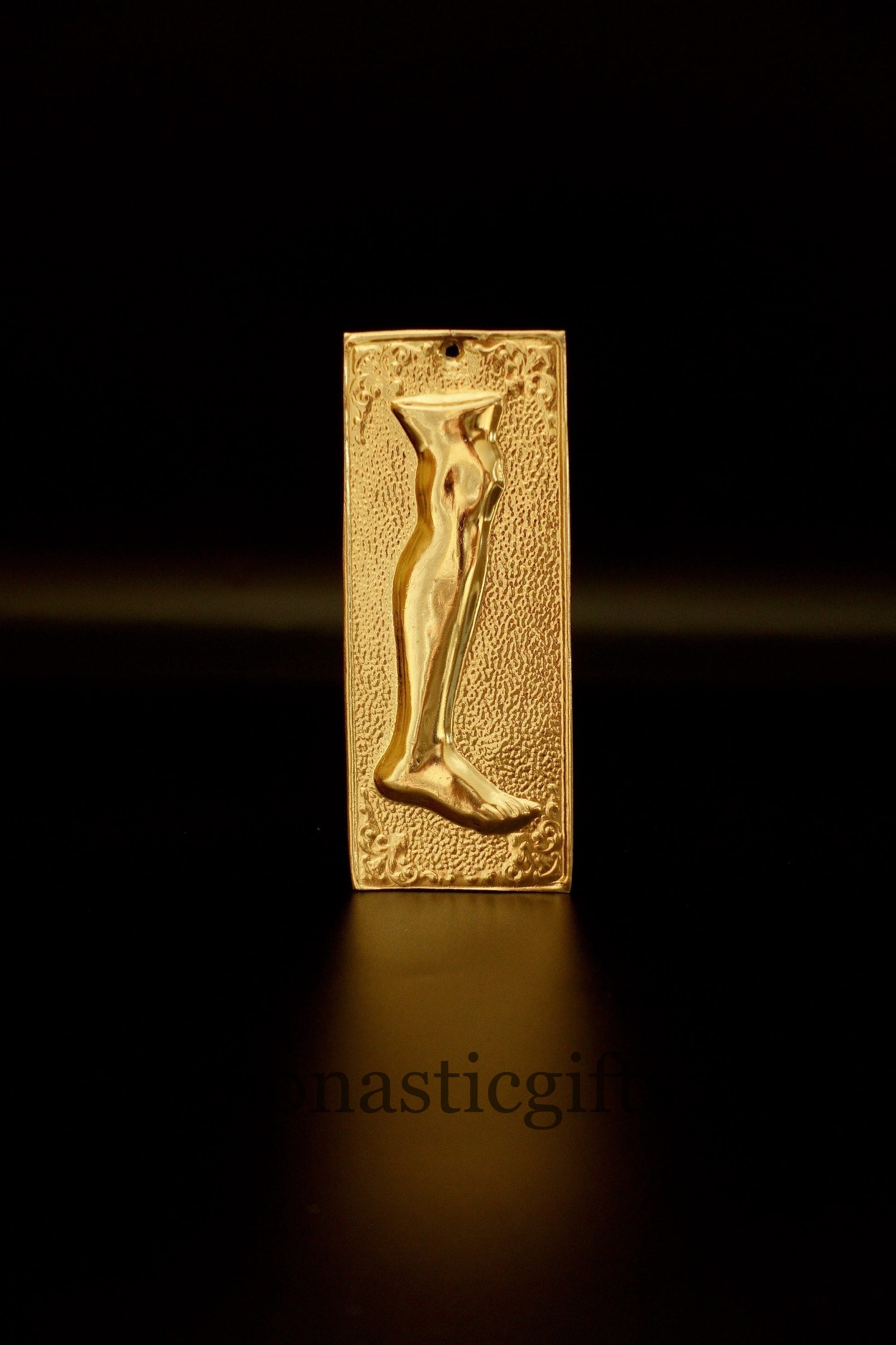 Tama Ex Voto " Leg " Greek Orthodox Icon Embossed Metal Plaque Colored Gold