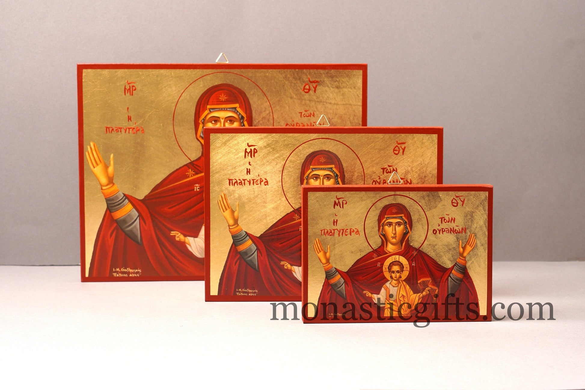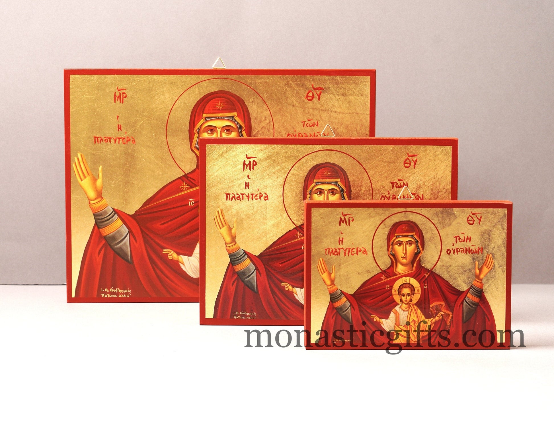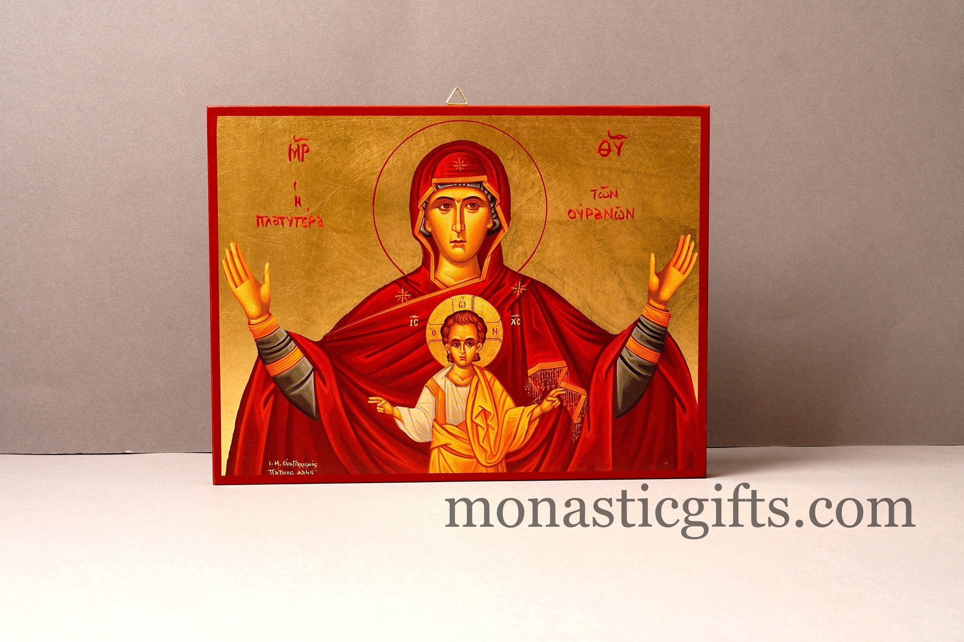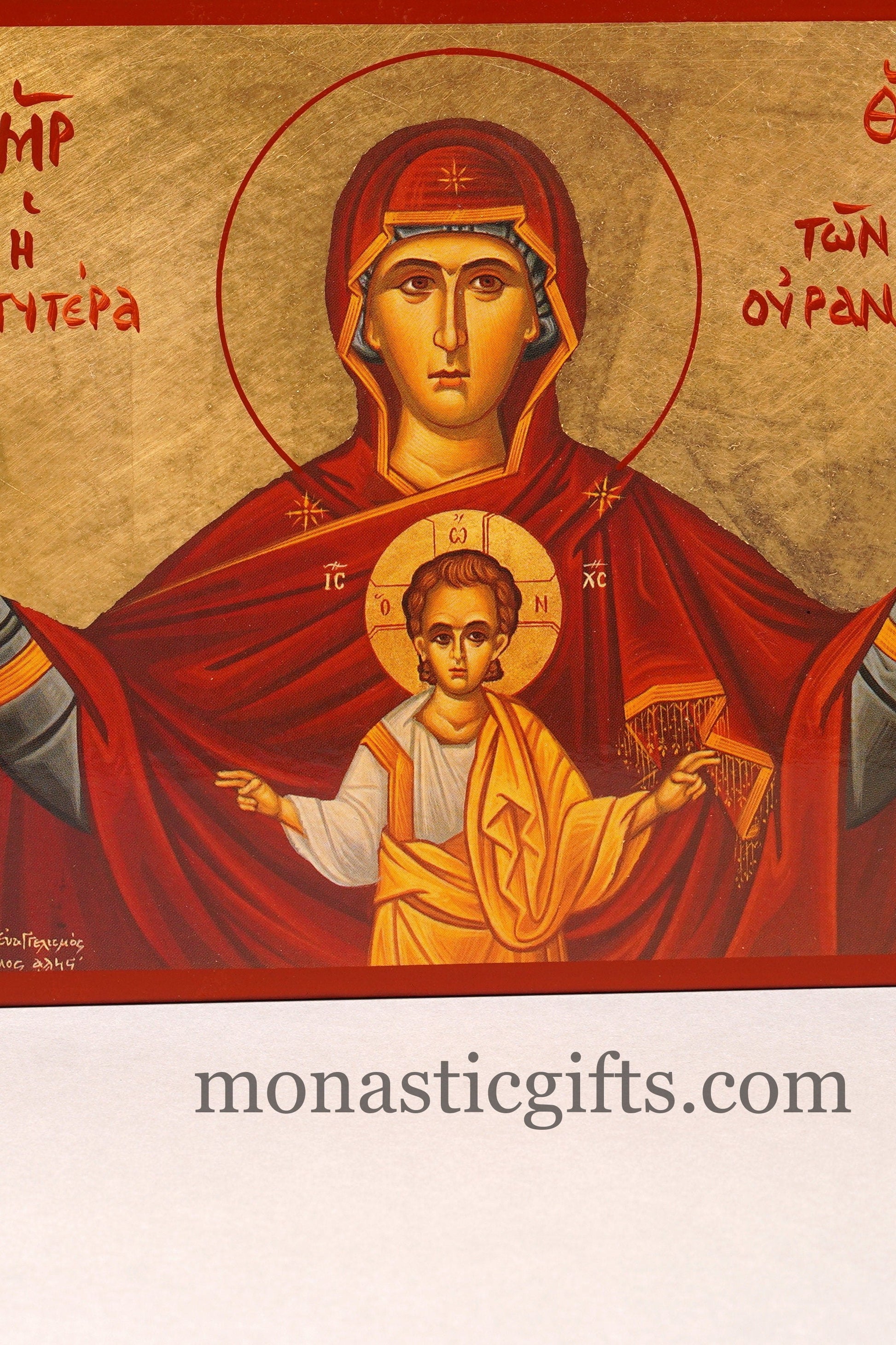 Virgin Mary Platytera Ouranon of Sky with Jesus Christ Wooden Icon in Golden leaf, Byzantine icon Our Lord 's Christian home giftVirgin Mary Platytera Ouranon of Sky with Jesus Christ Wooden Icon