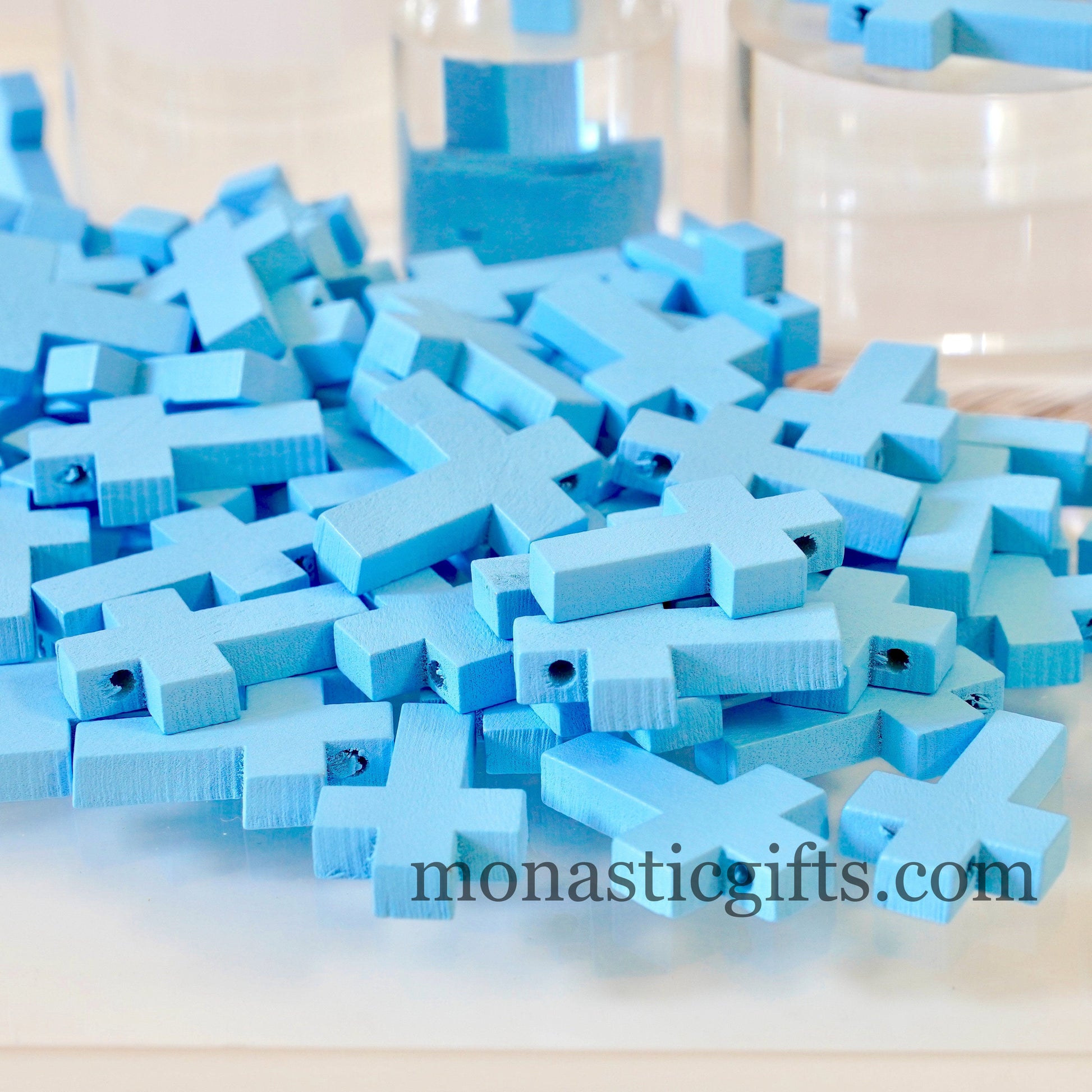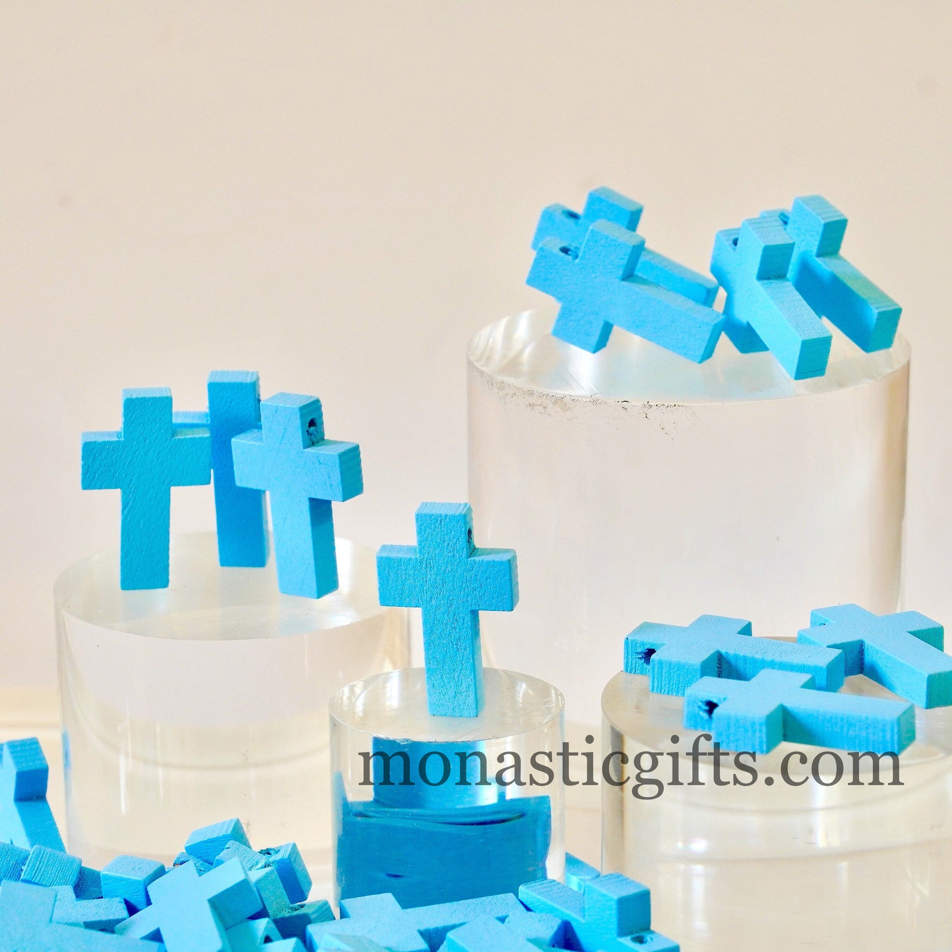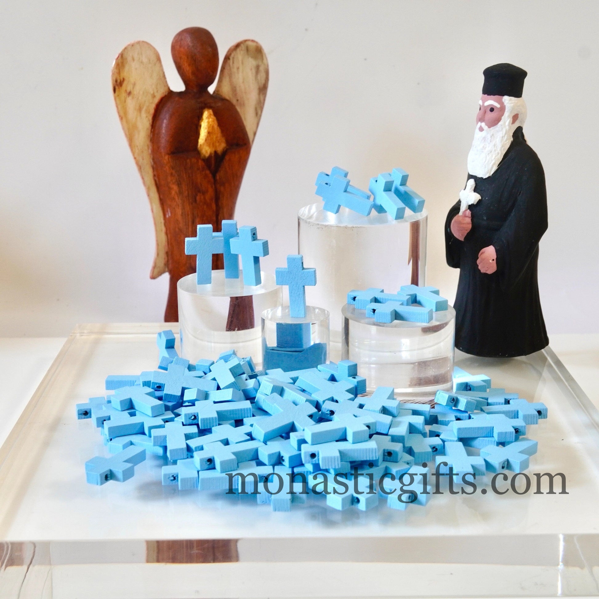 Wooden Tiny Cross (Blue) Charm 10pcs - Orthodox , Catholic, Byzantine Christian amazing idea to make orthodox Christians gifts